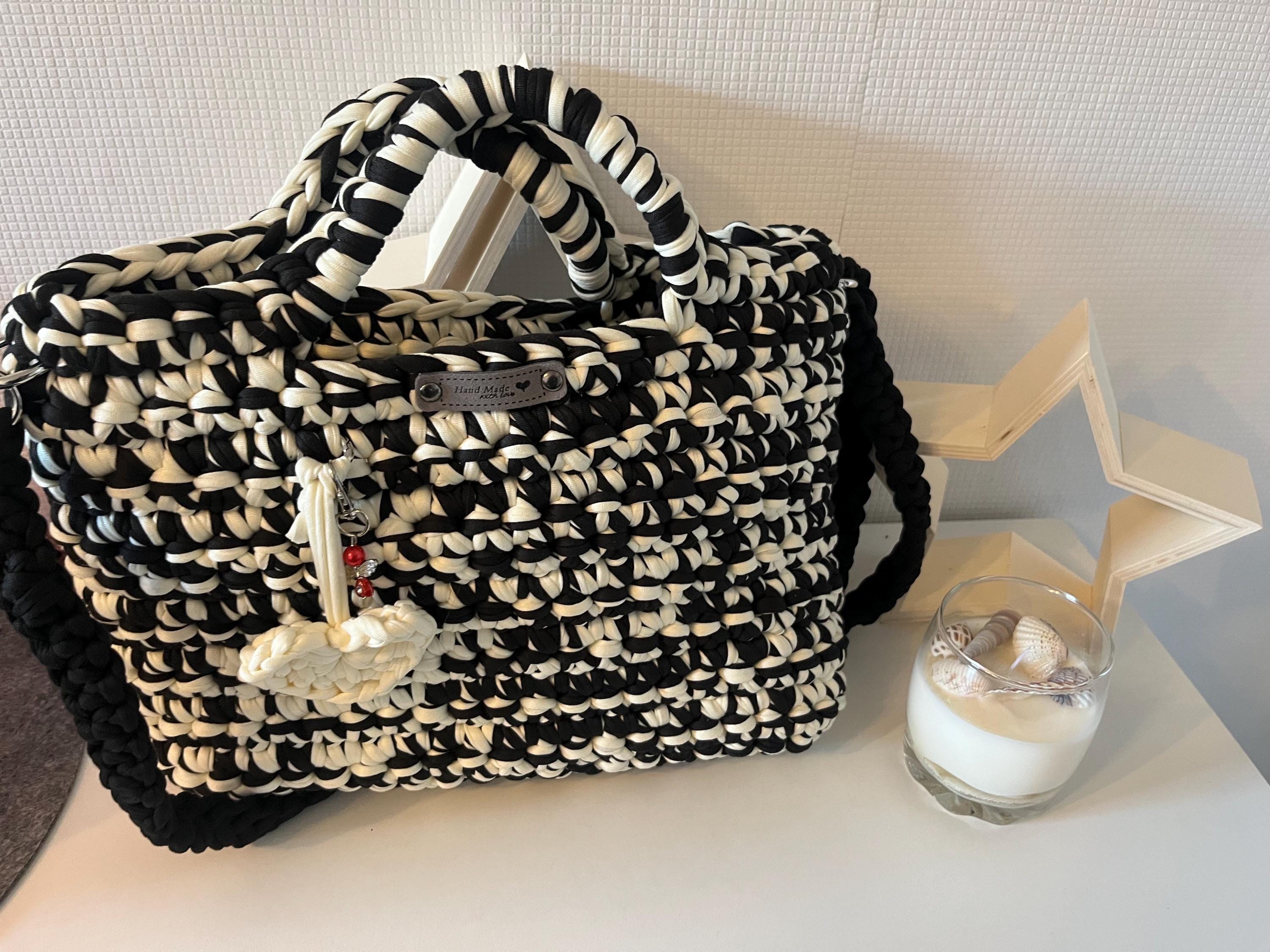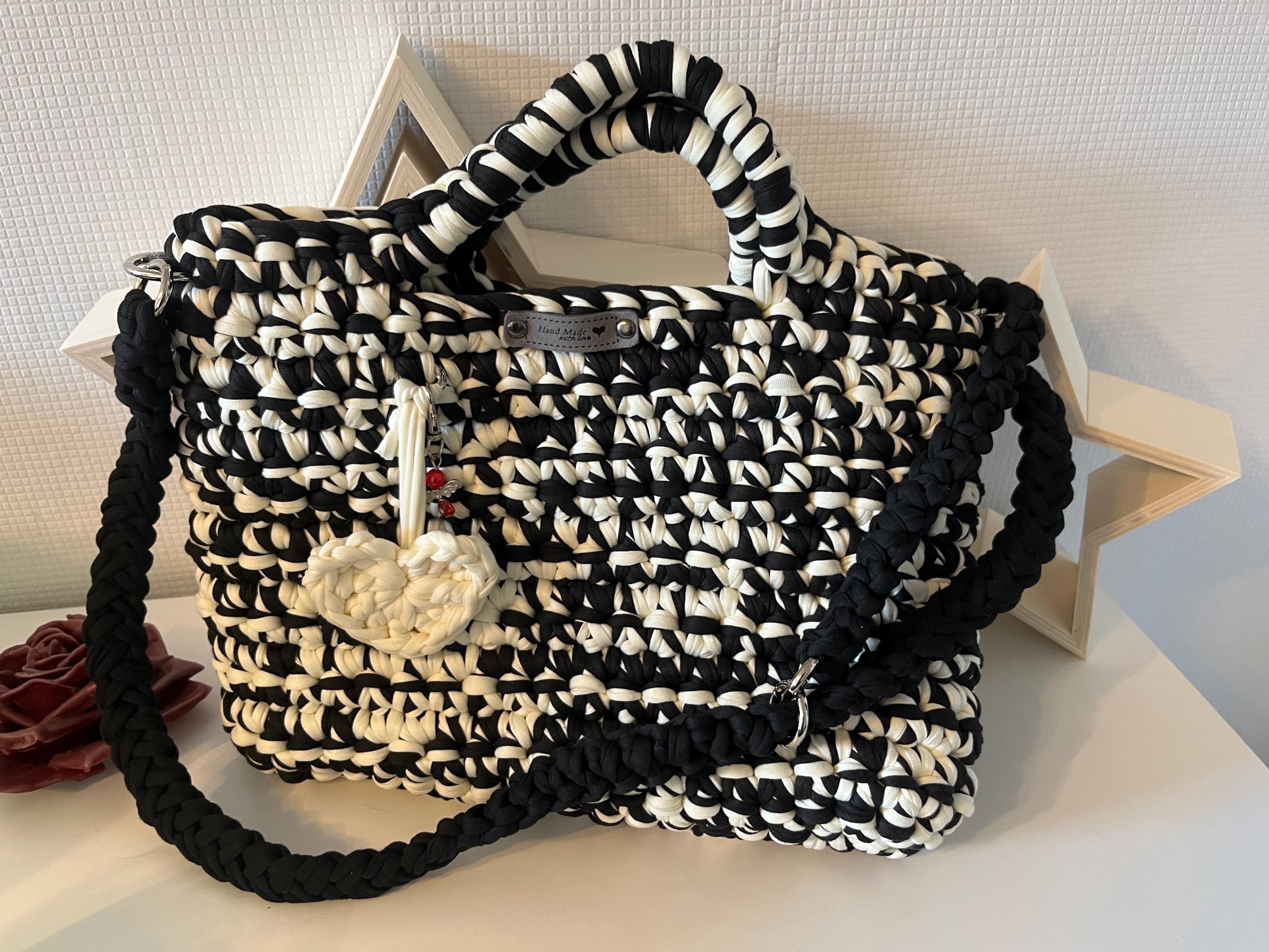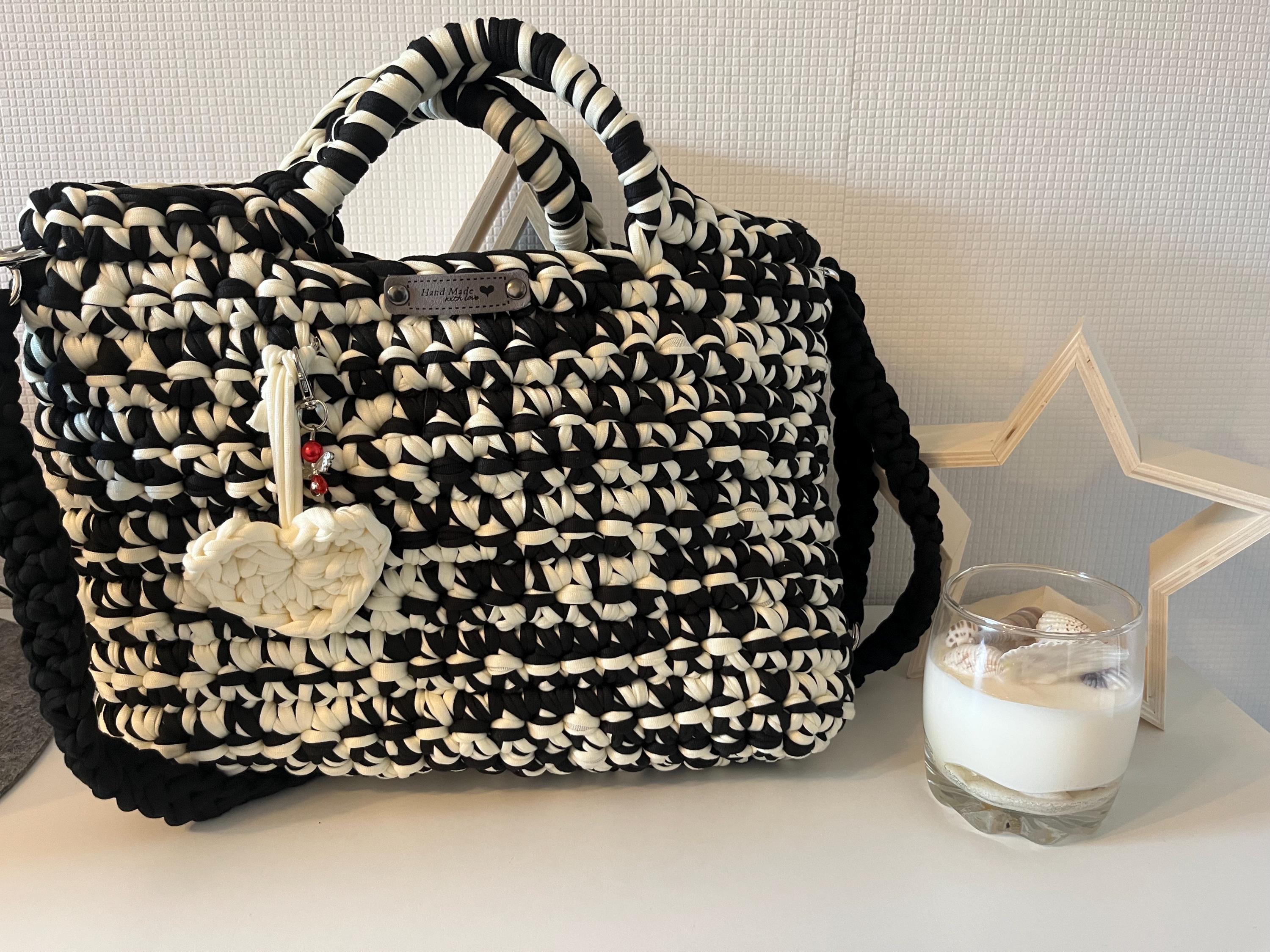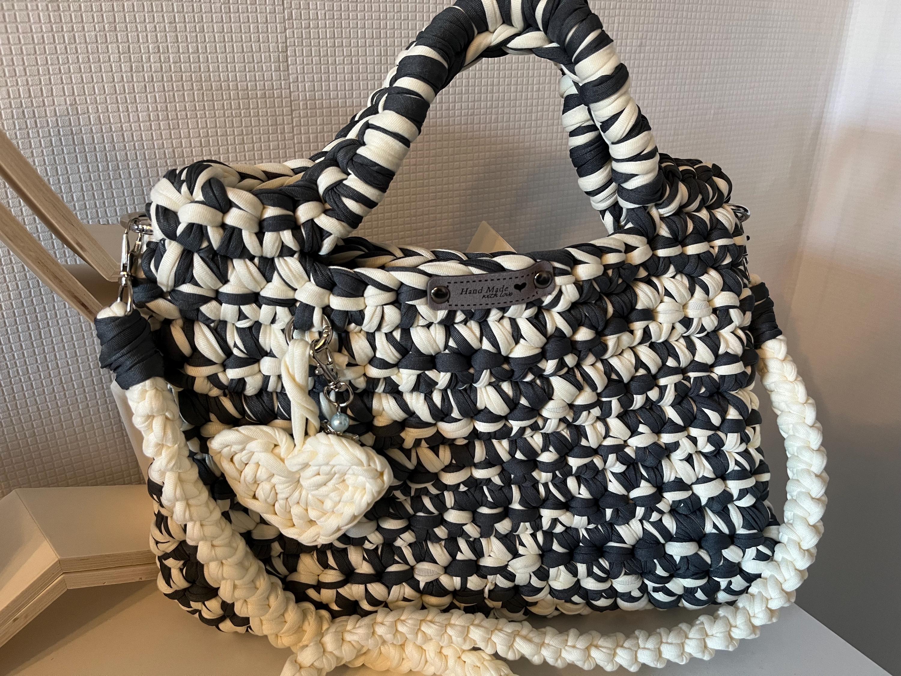 🖤The bags come in different sizes and are crocheted with double T-shirt yarn. On each bag there is a small crocheted heart in a matching color and a small angel as an appliqué. The colors can be chosen as desired.